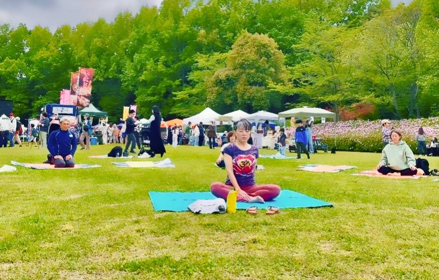 ゆったりと流れるように動くフローヨガ。 終盤はシンギングボウルの音に包まれ目を閉じ瞑想します。